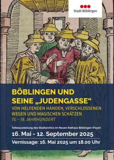 Das Stadtarchiv Böblingen lädt herzlich zur stadtgeschichtlichen Tafelausstellung „Böblingen und seine ‚Judengasse‘. Von helfenden Händen, verschlossenen Wegen und magischen Schätzen (15. - 18. Jahrhundert)“ ein.